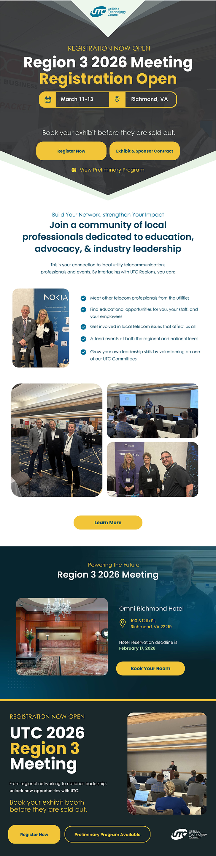 Region 3 will be held in Jacksonville, another cozy venue, with a fiber summit sponsored by our UtiliSite Council dovetailed with this event.